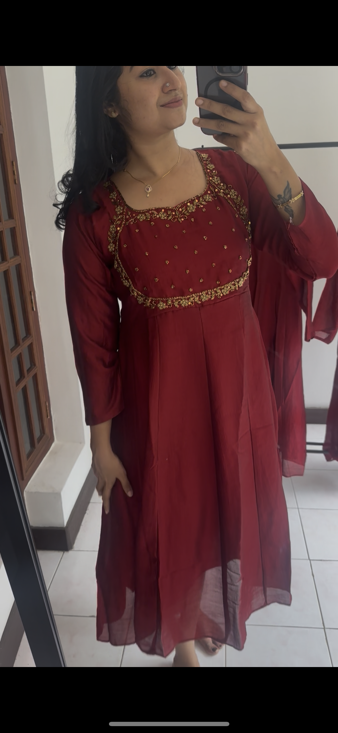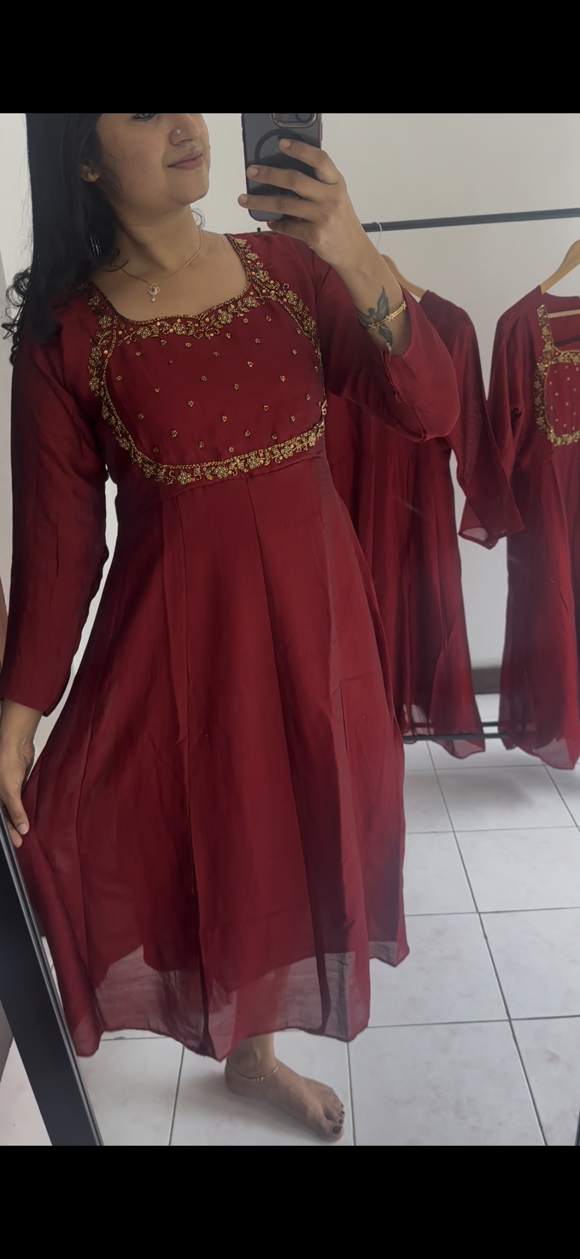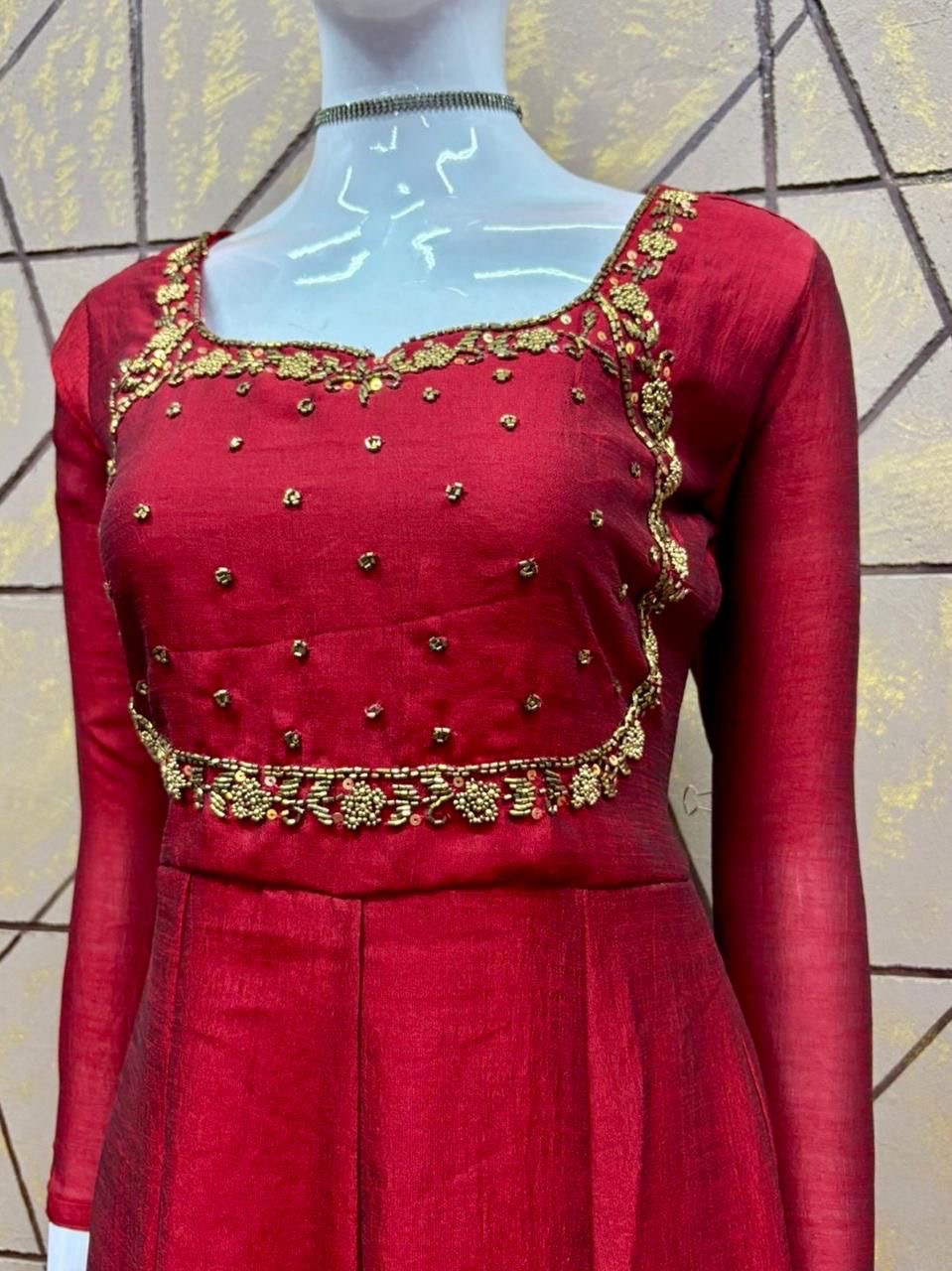 🌸Kali type Panel cut kurti with heavy handwork on yoke portion